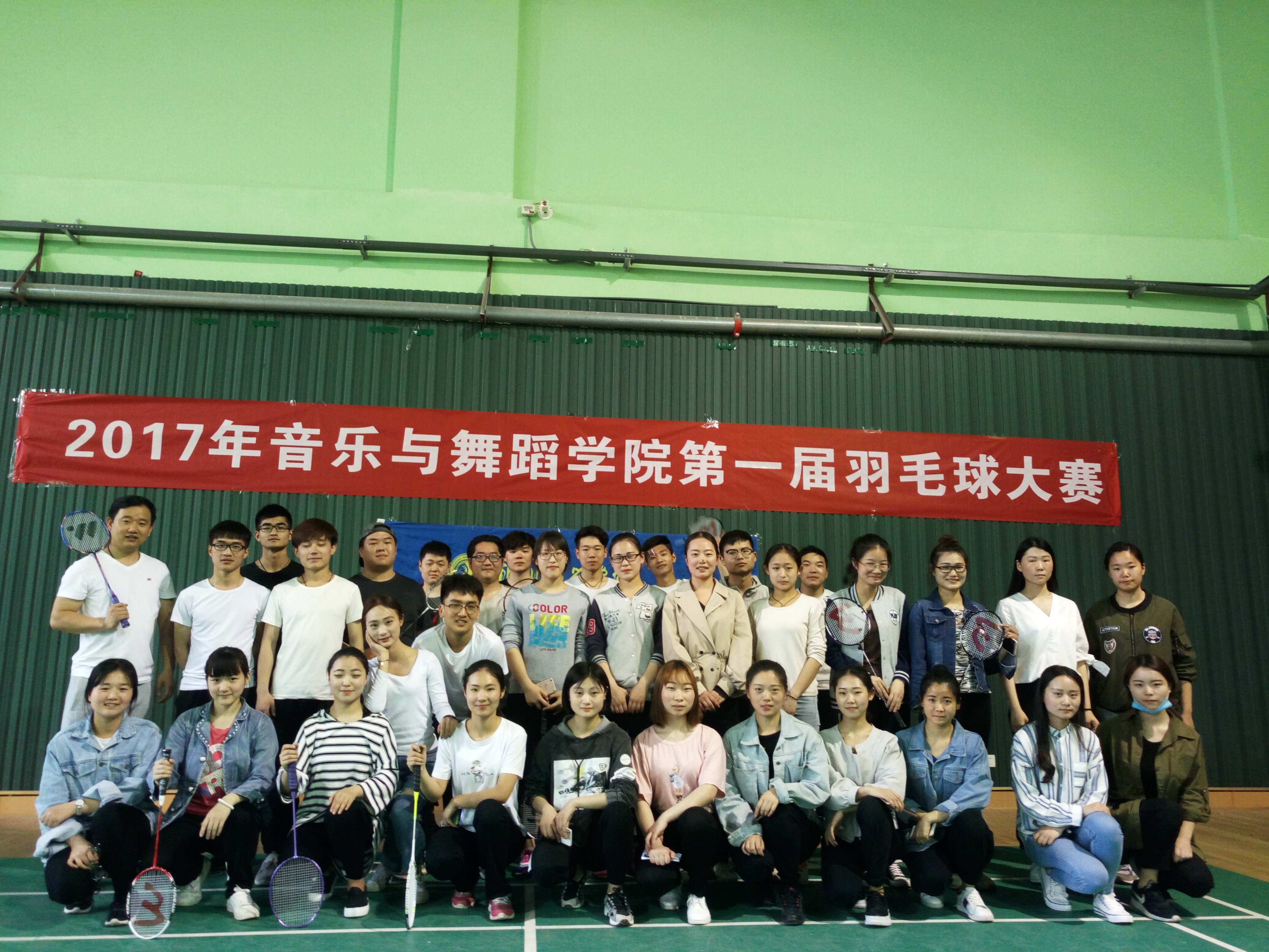 2017年4月25日中午12:30,2017年音乐与舞蹈学院第一届羽毛球大赛于东校区体育馆三楼羽毛球馆举办,十几位教师、数十名学生参赛选手,以及各啦啦队成员参加了此次比赛。