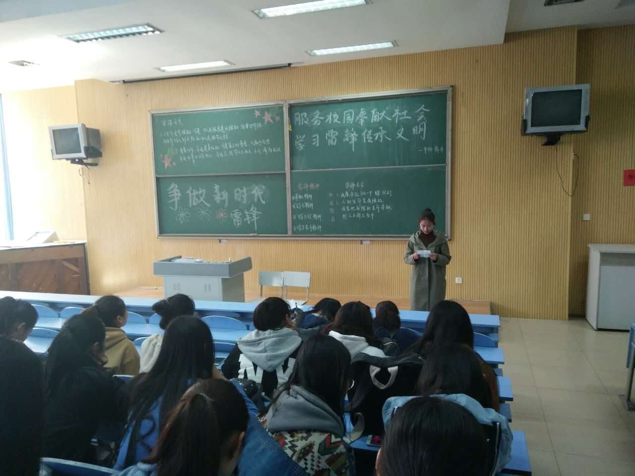 3月8日学习主题:服务校园奉献社会,学习雷锋传承文明。通过观看雷锋的故事,让同学们意识到:帮助别人的时候,自己也会感受到快乐。他,是我们的榜样。我们要学习他的无私奉献,学习他的刻苦,学习他的善良,学习他的一切一切。当今社会,十分需要向雷锋这样的人,为人民服务,宁可牺牲自我来成就别人。雷锋已经成为“为人民服务”的楷模,开创社会主义新风尚标兵,我们学院的全体师生也必将“雷锋精神”传递下去。
