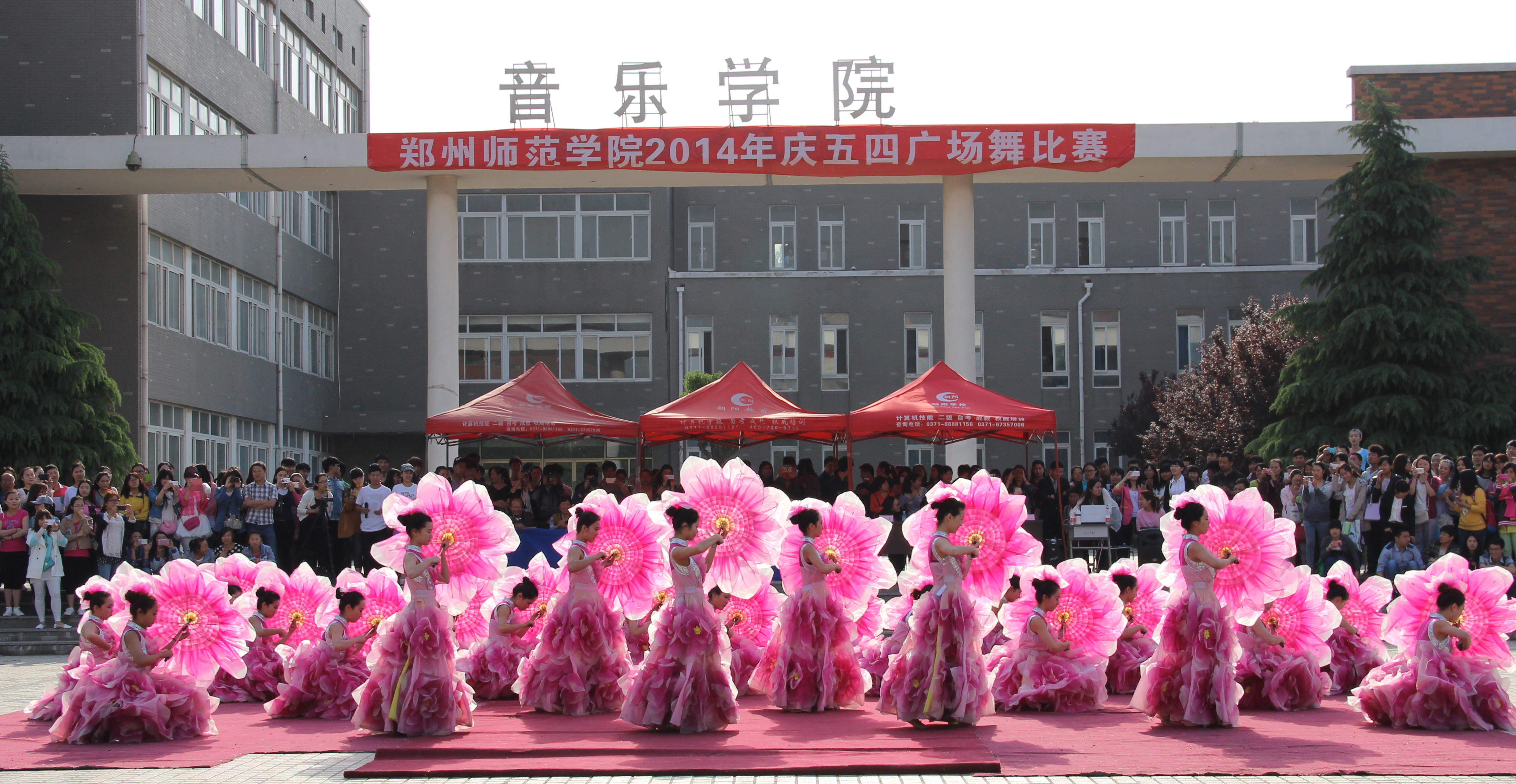 2014年5月4日下午四时,郑州师范学院举办的“五四广场舞” 决赛在音乐学院广场隆重举行。郑州师范学院党委书记于向英亲临比赛现场观看盛况,音乐学院负责人王国良教授、音乐学院党总支负责人朱青教授等领导也出席了此次活动。