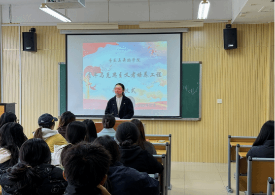 接着,我院党总支副书记田艳艳以“筑牢信仰之基,勇担时代使命”为题开启“青马班”思想政治教育第一讲。她指出,马克思主义是青年艺术从业者的“思想罗盘”,既能破解“传承与创新”的创作难题,更能明晰艺术的时代坐标。以学院获奖佳作《麦田之上》为例,其生动诠释了马克思主义对艺术创作的深刻指引。勉励学员以此次学习为起点,让马克思主义融入每一段旋律、每一个舞步中。认真学习理论知识,积极参与实践活动,努力将马克思主义理论与专业学习相结合,以青春之力诠释青年担当,以艺术之美传播时代正能量。
