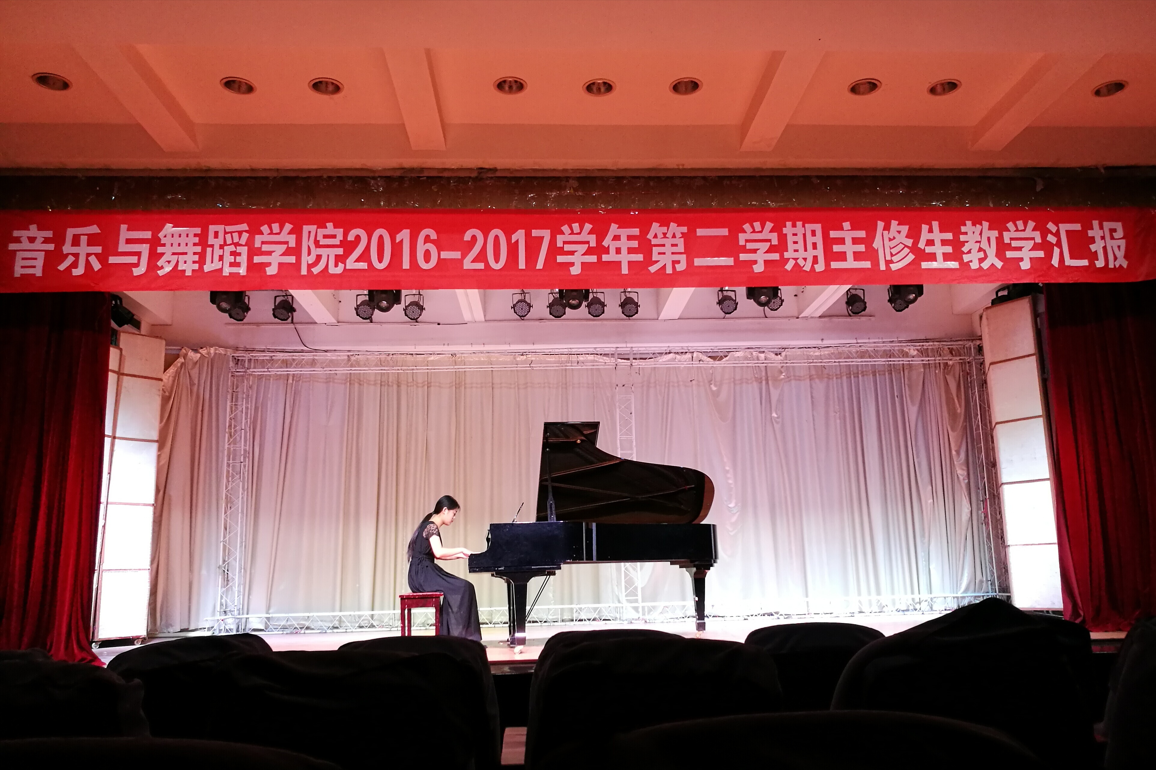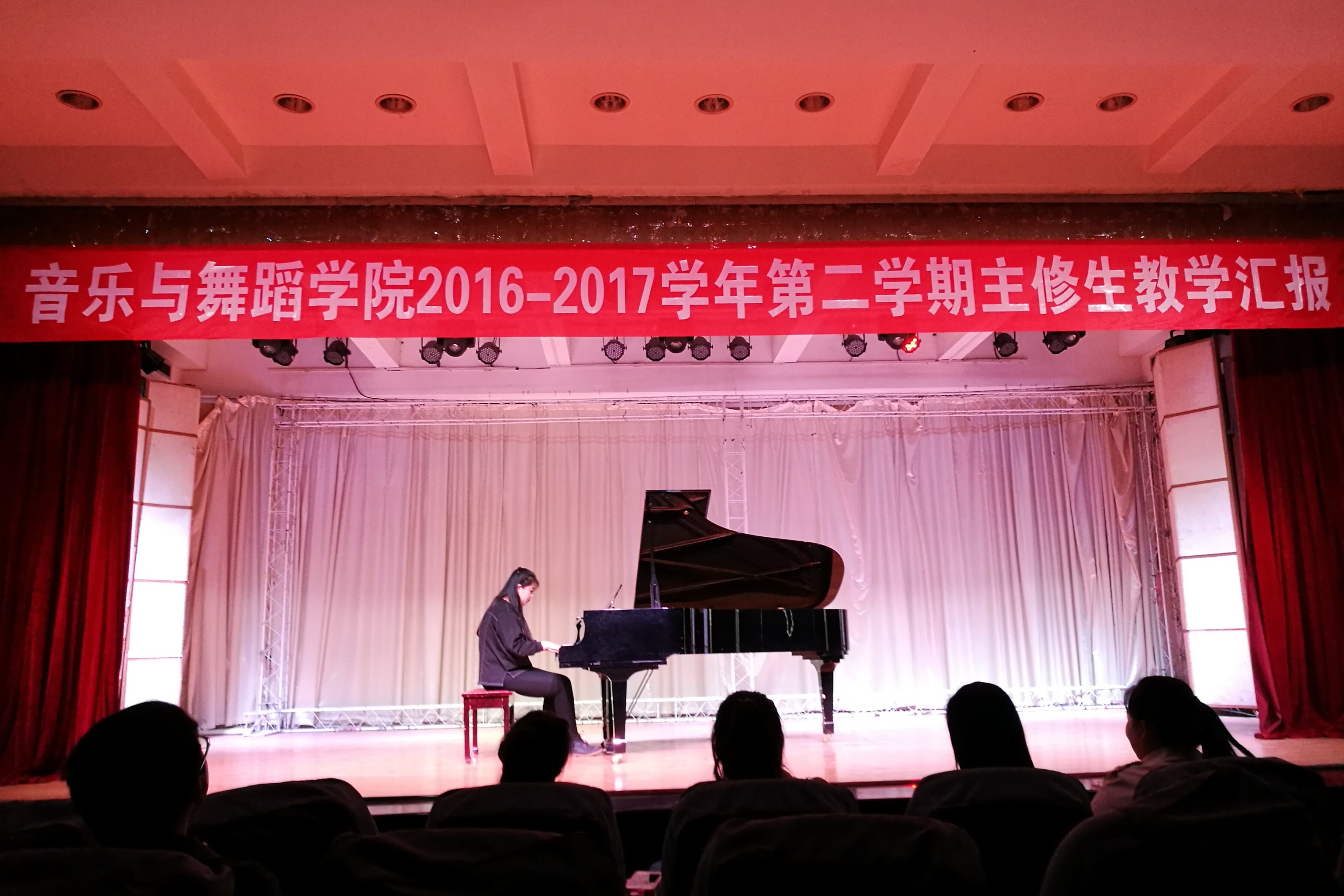 2017年4月5日晚18:00点,音乐与舞蹈学院S15级器乐表演班钢琴主修生汇报音乐会在六号楼四楼音乐厅如期举行。整场钢琴音乐会曲目新颖,同学们以精湛的演奏技巧,将古典钢琴奏鸣曲到近现代中国钢琴作品,依次展现给观众朋友,美妙的音符在指尖跳跃,优美的曲调在耳边飞扬!