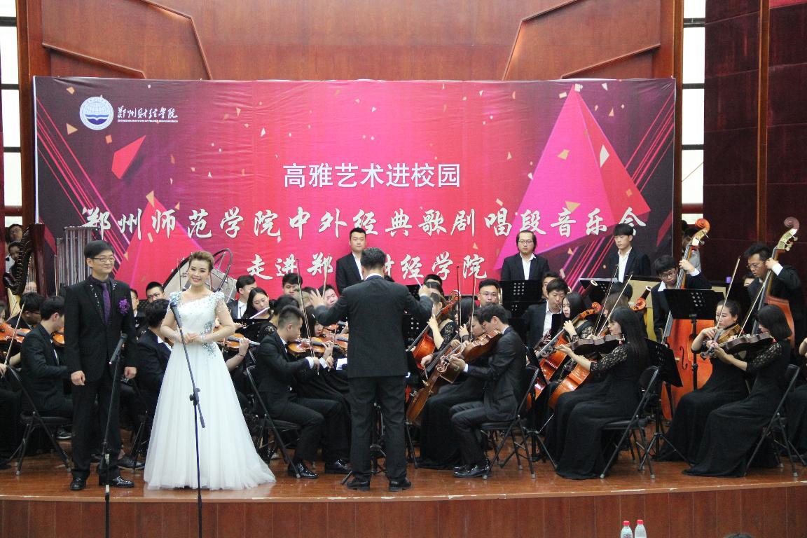 2016年5月31——6月2日,由河南省教育厅、河南省文化厅、河南省财政厅共同主办,郑州师范学院承办,音乐与舞蹈学院协办的“2016年河南省高雅艺术进校园活动——中外经典歌剧唱段音乐会”分别在郑州财经学院、黄河科技学院和郑州旅游职业学院上演,我校副校长孔青、纪委书记李树生、宣传部长惠保德,郑州财经学院副校长陈静、学工部部长陈志强,黄河科技学院副书记赵会利、团委书记陆竹棠,郑州旅游职业学院副院长徐永清、张建军,纪委书记毛艳、宣传部长刘亚东出席音乐会并观看了演出。