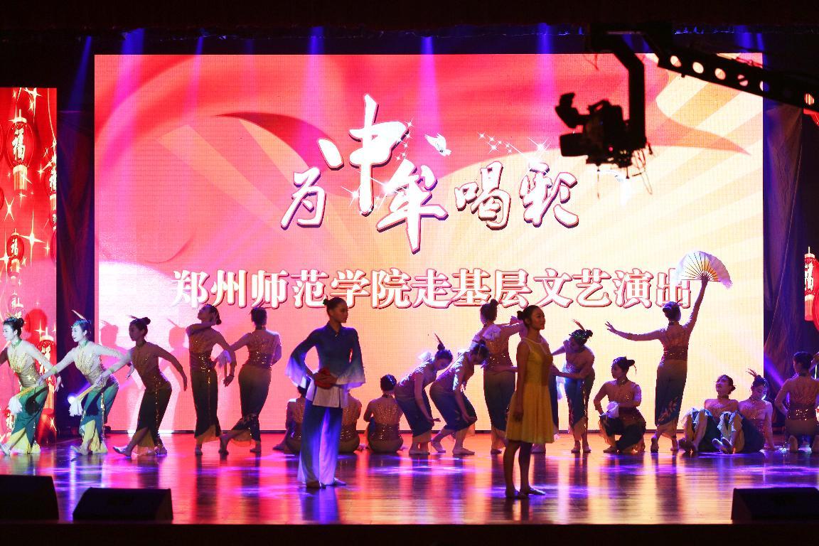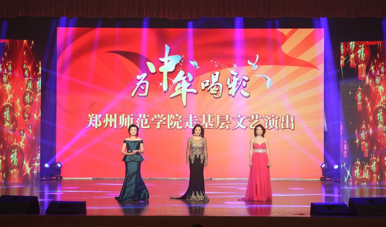 2015年12月21日下午,“为中牟喝彩”郑州师范学院走基层文艺演出在中牟县县委党校礼堂隆重上演。我校领导赵健、弓民、王北生、蒋丽珠、李树生和中牟县四大班子主要领导、中牟县各界代表共计800余人观看了此次演出。演出由音乐与舞蹈学院马宁和传播学院何向向共同主持。