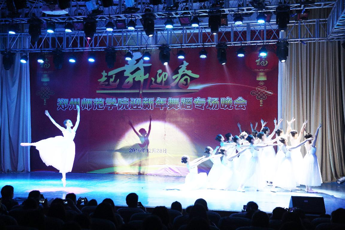 2015年12月28日晚,值此辞旧迎新之际,我校由音乐与舞蹈学院舞蹈系承办的“起舞迎春”迎新年舞蹈专场晚会在七号报告厅隆重举行。校领导、各部门负责人,各院系党总支、团总支书记与师生共同观看了舞蹈演出。晚会由音乐与舞蹈学院马宁和传播学院何向向共同主持。