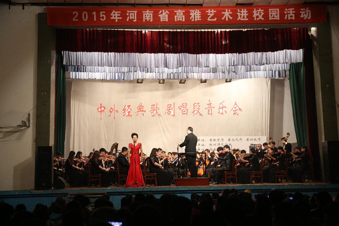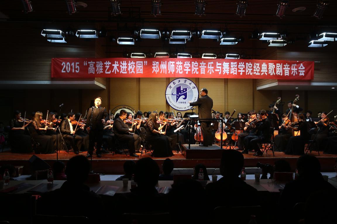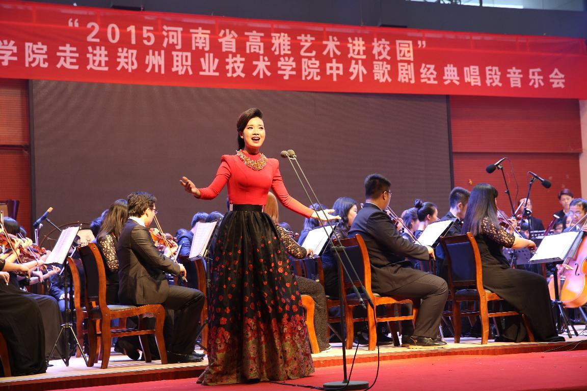 2015年11月10日,2015“高雅艺术进校园”—中外经典歌剧唱段音乐会在郑州职业技术学院正式拉开序幕。此次活动由河南省教育厅、文化厅和财政厅主办,郑州师范学院承办,音乐与舞蹈学院协办。9日晚,音乐会在七号楼报告厅向校领导和全体师生进行了汇报演出,带着大家中肯的建议和美好的祝愿,音院参演师生以饱满的热情和良好的精神风貌,分赴省内部分高校,为观众们奉献了一场场精彩的文艺演出。