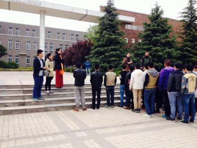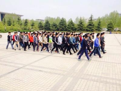 2015年4月13日中午12:30,音乐与舞蹈学院团学会体育部负责的男子64人运动会方块队的训练在下沉广场进行,音乐与舞蹈学院党总支负责人朱青教授,团总支书记梁向阳,14级辅导员梁可观看了训练情况。