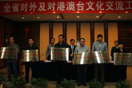 会上,郭俊峰、康洁等领导为第二批河南对外文化交流基地授牌,我校与河南师范大学、郑州大学西亚斯国际学院、郑州天宇演艺有限公司、少林塔沟武术学校、少林鹅坡武术专修院6家单位和机构获颁“河南省对外文化交流基地”称号。