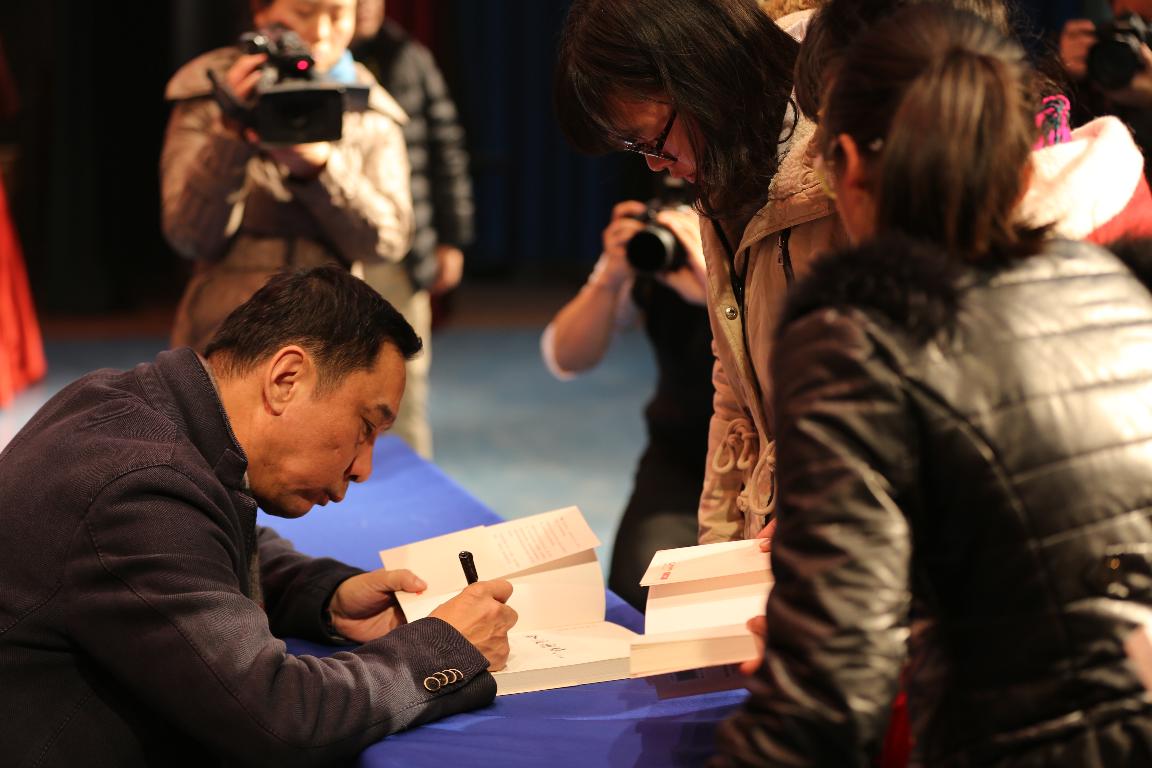 此外,他还为师院学子带来了新近出版的作品《朗诵中国——朱海朗诵诗选》《今夜无眠——朱海词作品选》,受到了众多大学生文学爱好者的热烈欢迎。我校师生还以歌舞现场展示了朱海的代表作《今夜无眠》《盛世和韵》,郑州电视台主持人米娜朗诵了诗歌《母语的花环》。