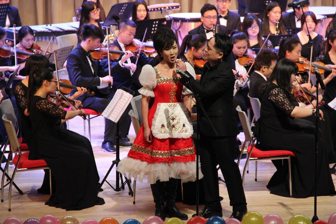 音乐会在管弦乐团演奏的《康康舞曲》中拉开帷幕,其中不仅有家喻户晓的民族歌剧剧目《白毛女》、《江姐》、《原野》,还有来自意大利、法国、奥地利等异国他乡的《卡门》、《斗牛士之歌》、《不要再去做情郎》等经典外国歌剧片段。演出间隙,更是安排了交响乐队知识普及环节,寓教于乐,为师生们营造了浓厚的艺术氛围,精彩的演出受到了两校近五千余名师生的热烈欢迎。