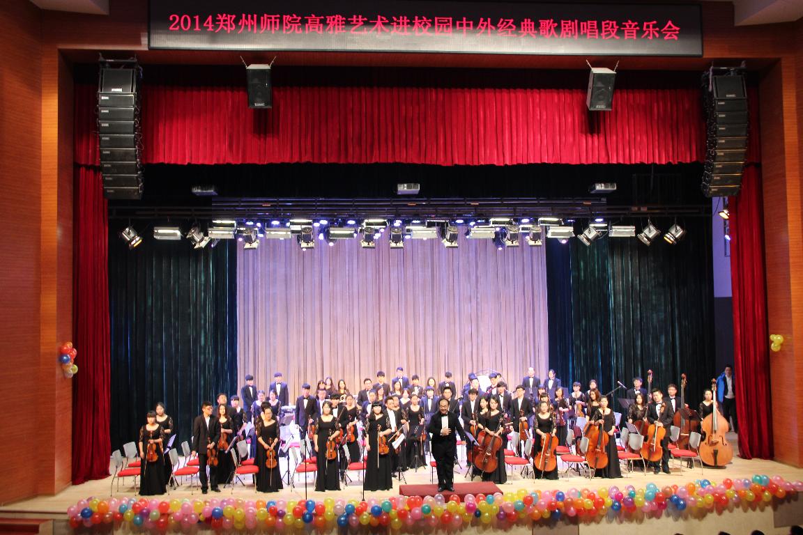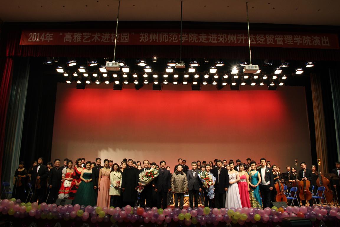 12月9日和10日,音乐与舞蹈学院分别在张建航、赵玉岭副校长的率领下,赴郑州幼儿师范高等专科学校和郑州升达经贸管理学院,隆重上演了由省教育厅、省文化厅、省财政厅共同主办、我校承办的“2014高雅艺术进校园——中外经典歌剧片段音乐会”。