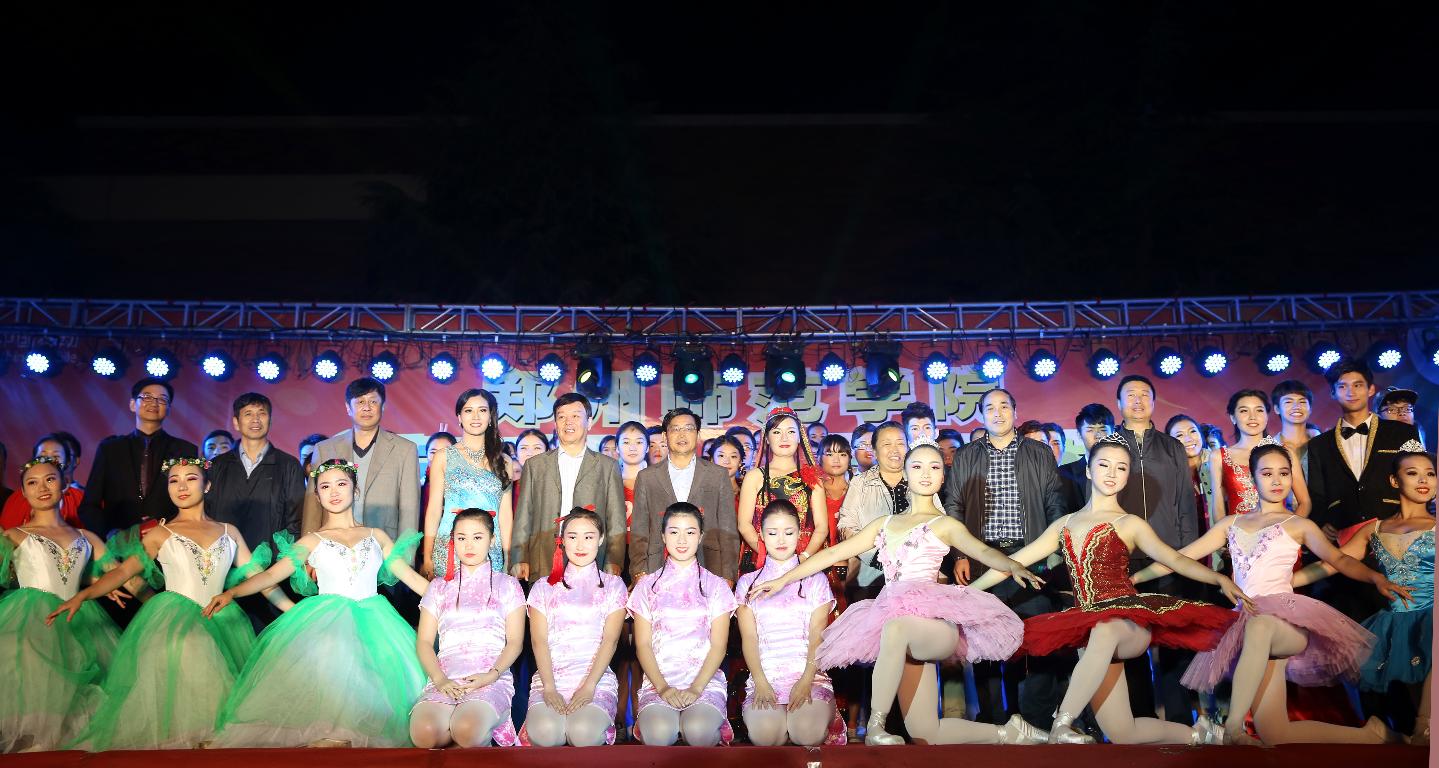 2014年10月14日晚7点,音乐与舞蹈学院部分师生在西校区艺术广场参加了由学校宣传部、学工部、团委主办的2014年“师院情 中国梦”迎新晚会演出。出席此次晚会的领导有:党委书记于向英,校长赵健,党委副书记、工会主席弓民,副校长王北生,副校长张建航,副校长孔青,中科院研究员、博士生导师马润林。各行政部门负责人和各学院党总书记、院长、副书记等也到场观看晚会。近6000名师生观看了此次迎新晚会。