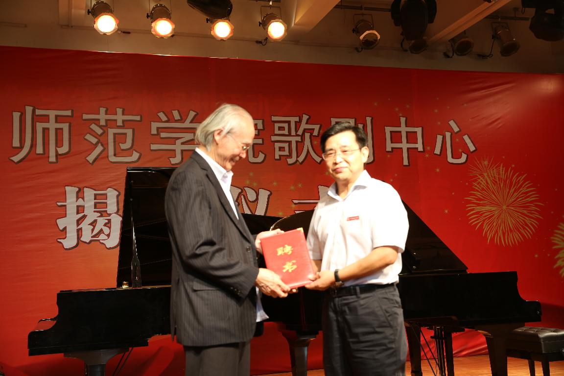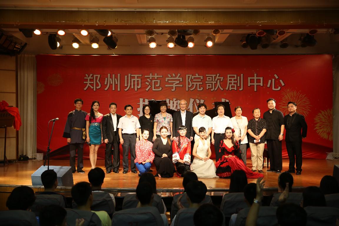 揭牌仪式上,校长赵健对“歌剧中心”的成立表示热烈地祝贺,并向国家一级指挥、享受国务院颁发的政府特殊津贴的卞祖善先生颁发郑州师范学院歌剧中心艺术顾问证书。著名青年指挥家、美国南加州爱乐乐团艺术总监、美国科洛纳音乐学院院长、郑州师范学院歌剧中心艺术总监苏文星和郑州市人大常委会副主任舒安娜为歌剧中心揭牌。