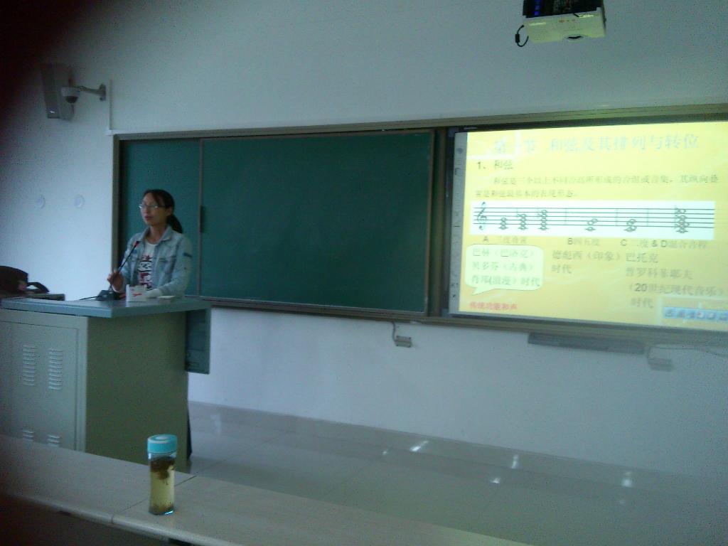 本次教学观摩课由管明书老师讲授,课程为2012级本科班《多声部音乐分析与写作》,管老师就“主调音乐的纵向结构——和声”的基本概念、基本要素进行详细又具体的分析讲解。课堂上管老师结合师生亲身体验,对和弦不同排列、不同结构的音响特点进行剖析,并总结出和弦进行的规律;通过列举与学生音乐生活息息相关的音乐实例,探究了音乐流动性的本质——“和声功能”。本节课通过管老师深入浅出地对学生进行引导与分析,课堂上师生互动积极,达到了预期的教学效果。