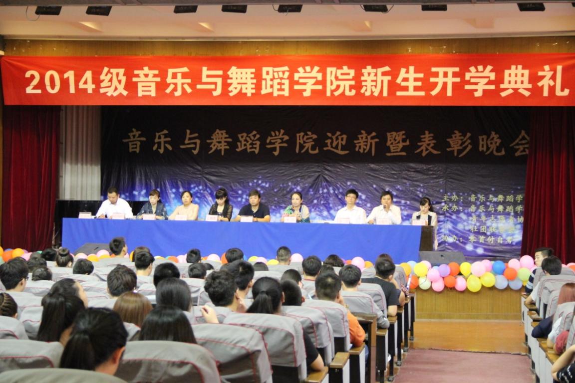 2014年9月26日下午16:30,音乐与舞蹈学院在音乐厅举行了2014级新生开学典礼,院领导及各部门负责人出席典礼。