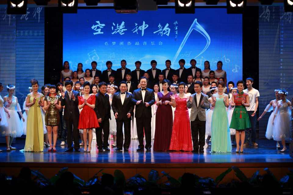 2013年12月29日晚,由我校和中国艺术家专项基金联合主办的“空港神韵----毛梦溪作品音乐会”在河南省艺术中心“品味中原”剧场举行。全国政协副秘书长、民进中央副主席朱永新出席并讲话,校长赵健致开幕辞。全国政协常委、民进河南省委主委张震宇,郑州市音乐家协会名誉主席、党委书记于向英,中国艺术家专项基金主任谢向英、河南省音乐家协会驻会副主席、河南省合唱联盟主席李仲党到会祝贺。中国绿化基金会文化大使、著名书画家谢云生为演唱会题名。音乐学院的王艳霞、李雯、肖扬、万蕾、姬海冰、张伟芳、何卓、董晶晶、石爽、马宁、陈鹏、李清波等十余位河南省“文华奖”专业声乐大赛、河南省音乐金钟奖等多种奖项金奖得主,以及我校音乐学院合唱团师生参加了演出。