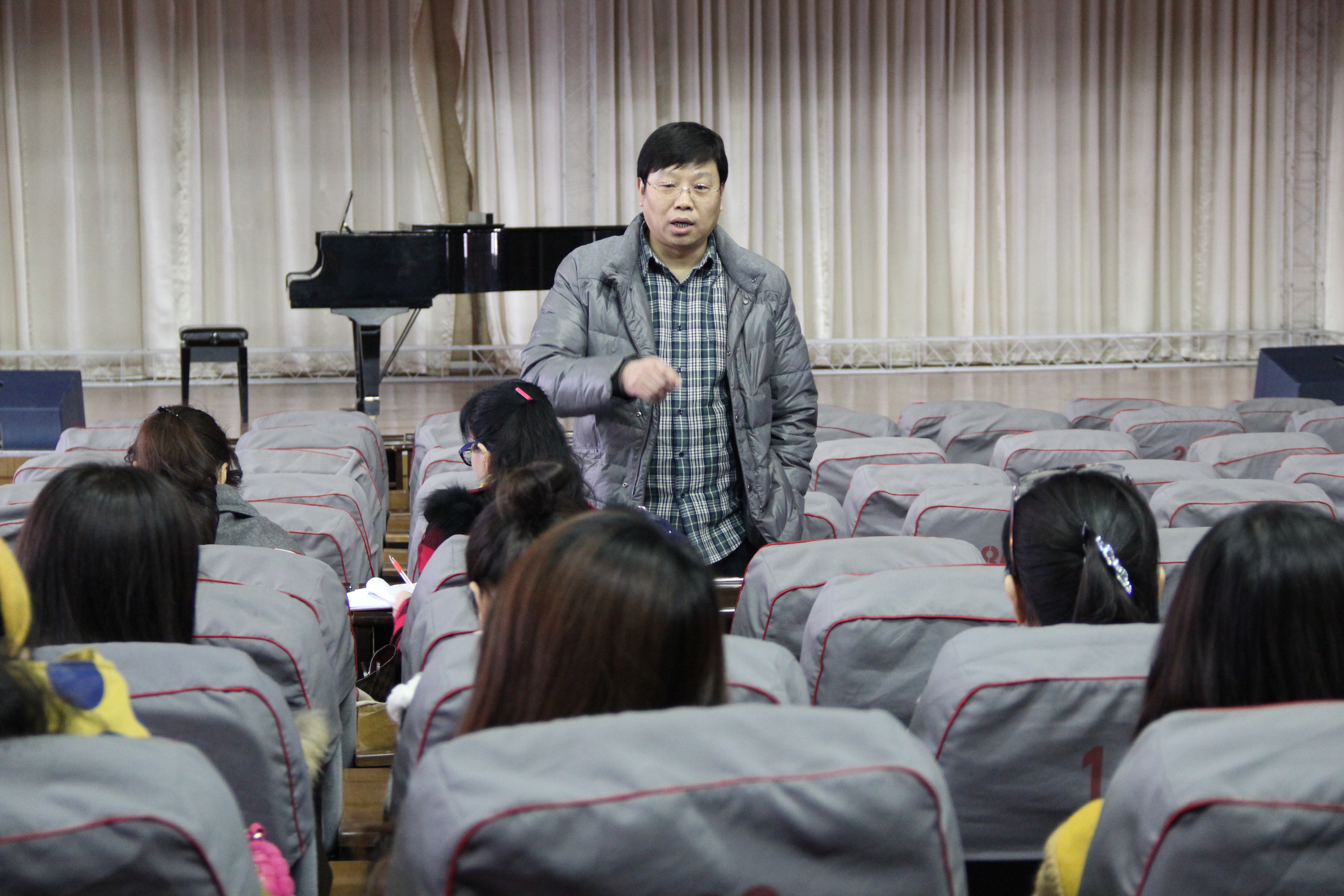会上,音乐学院负责人王国良教授首先向全体教职员工传达了于书记、赵校长在新学期干部大会暨“本科教学工程”推进会上的重要讲话,然后就本学期重点工作和各项安排同大家进行了通报与沟通。王国良教授要求全体人员团结协作,进一步转变工作作风,完成好近期的实习、补考、招生和演出工作。副院长王艳霞教授也按照学校教学工作的总体计划对近期有关教学的诸多事宜做了布置与安排。