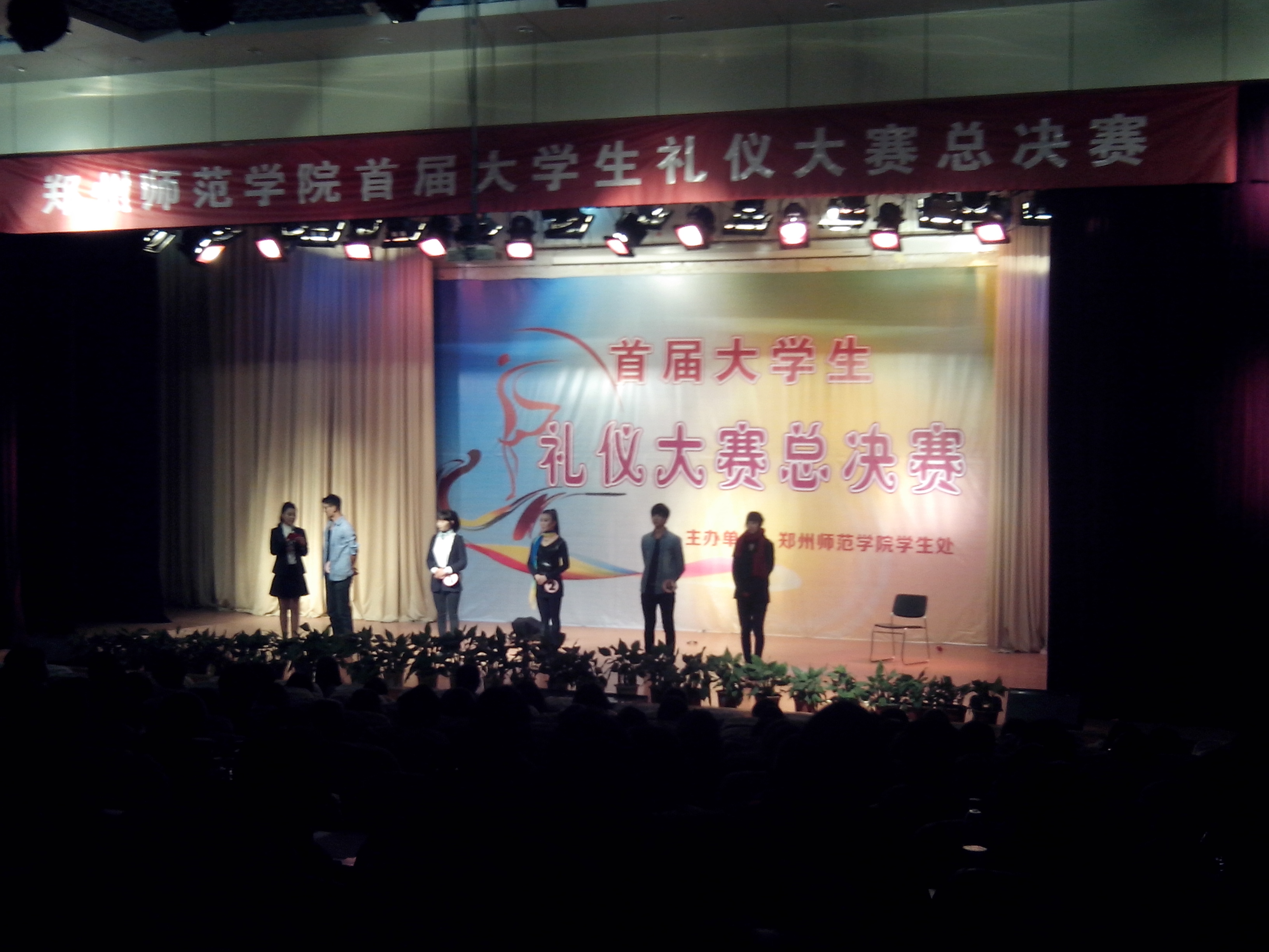2013年12月3日下午14:30,由郑州师范学院学生处主办的“首届大学生礼仪大赛”总决赛在7号报告厅如期举行。郑州市文明办张君华女士、河南省著名表演艺术家于同云先生,校领导于向英书记、弓民副书记、张建航副校长出席了本次大赛。