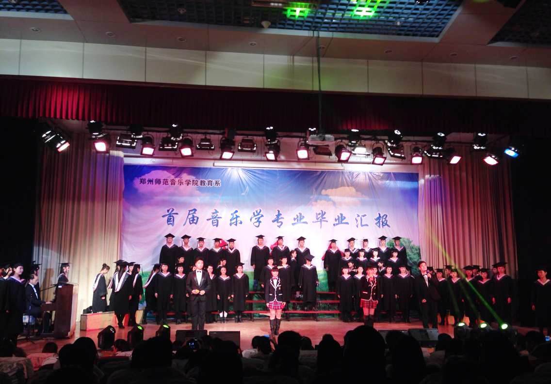 2013年12月10日晚19:30,音乐学院音乐教育系首届音乐学专业毕业汇报音乐会在七号楼学术报告厅成功举办。副校长王北生、孔青,教务处处长盛宾、宣传部部长惠保德、就业指导中心副主任吴磊、金水区艺术小学教务处主任郑磊永、音乐学院负责人王国良、副院长王艳霞、音乐学院党总支工作负责人朱青及相关系部领导出席并观看了音乐会。