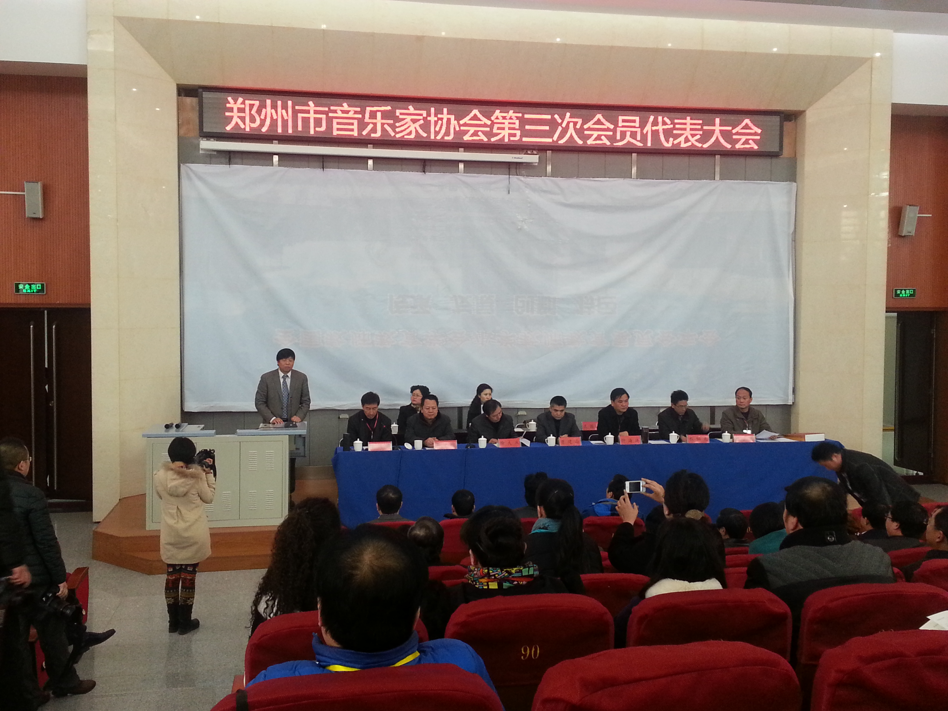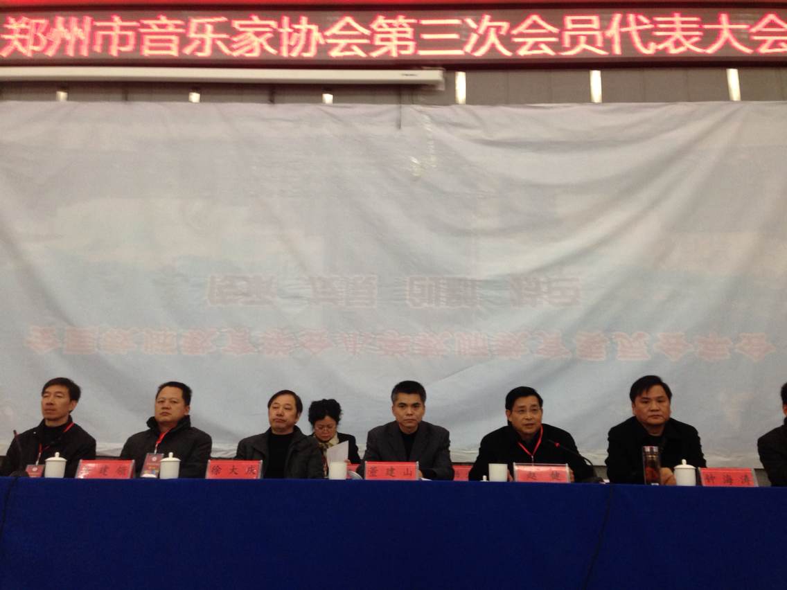 2013年12月15日上午,郑州市音乐家协会第三次代表大会在我校公共教学楼A301隆重召开。郑州师范学院院长赵健、郑州市宣传部副部长董建山、艺术处处长马建岭、郑州市文联党组书记徐大庆、主席钟海涛、副主席程韬光等领导出席会议,会议由郑州市文联纪检书记李国昌主持,六十余名代表参加了会议。