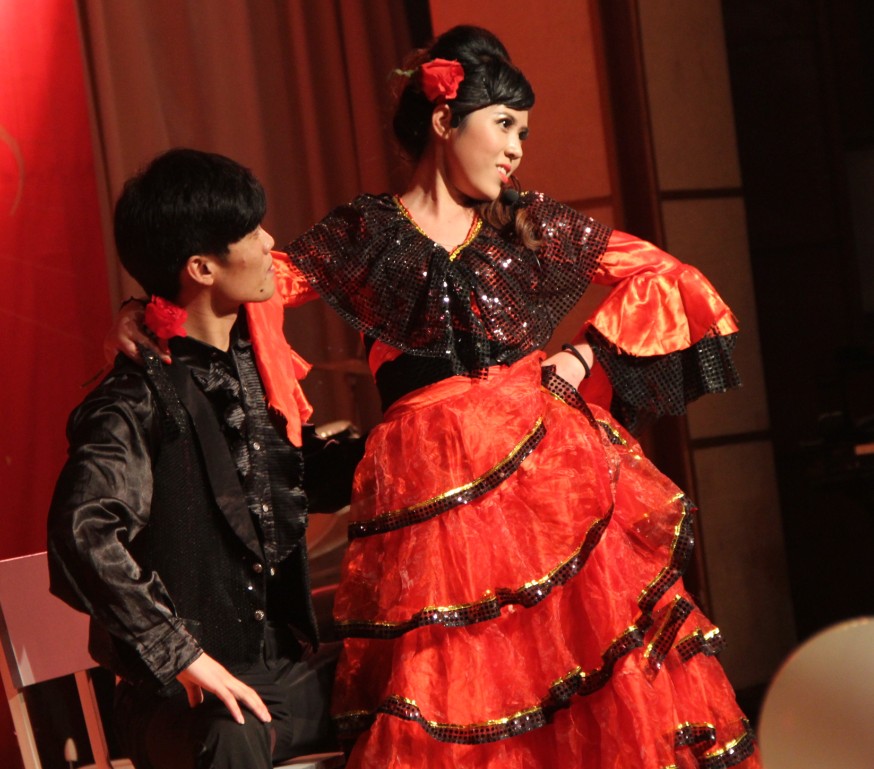 演出在充满激情的电声乐表演中拉开了序幕,音乐会节目形式多样,融合了歌曲、器乐、舞蹈、戏曲等,吴亚如女声独唱《军营里飞来一只百灵》、舞蹈《惊鸿舞》、男女二重唱《爱情圆舞曲》、民乐合奏《彩云追月》、黄梅戏《女驸马》等节目给观众留下深刻的印象。整个演出过程,音乐厅内掌声、喝彩声不断,充分展示出B11音乐学二班学生较高的专业水准和课下积极准备、勤奋努力的排练成果。