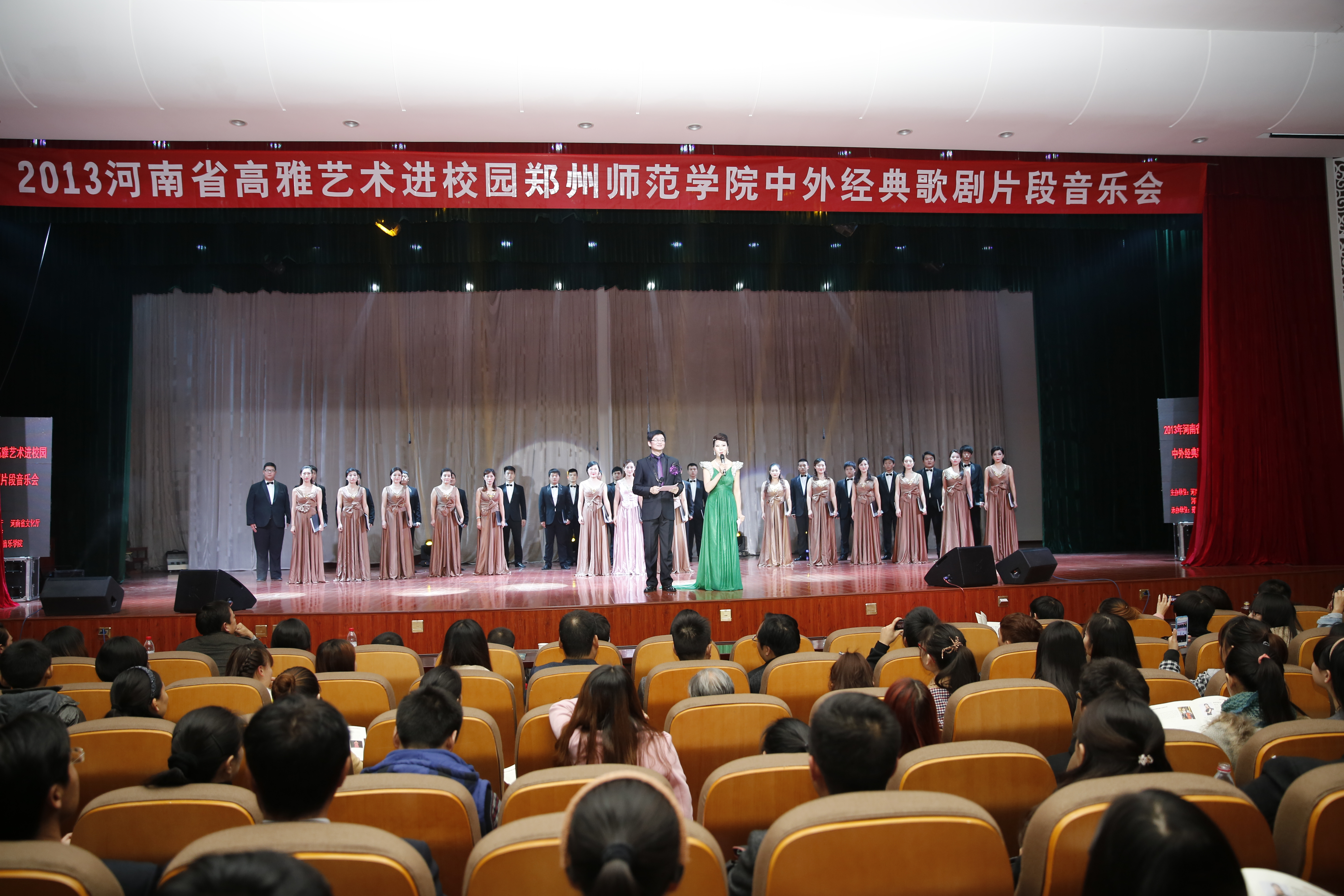 2013年11月11日晚和11月14日晚,由省教育厅、文化厅和财政厅联合主办的2013年河南省“高雅艺术进校园”郑州师范学院音乐学院中外经典歌剧片段音乐会分别在新乡职业技术学院和南阳理工学院隆重举行。学校党委副书记弓民、副校长张建航、新乡职业技术学院党委书记朱性福、副书记杨剑虹、纪委书记刘君利、南阳理工学院党委副书记郭建生出席音乐会。