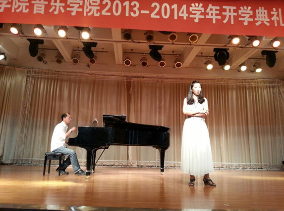 会上,李丽宁教授向新生们介绍了音乐教育系的情况,并代表全系教师对2013级新生的顺利入学表示祝贺与欢迎。接下来,各个教研室的老师分别作了自我介绍,大会在王媛媛老师一曲《哈巴涅拉舞曲》中拉开了序幕,全场掌声十分热烈;林静静老师为大家带来了一首李斯特的钢琴曲,那优美的琴声回旋在整个音乐厅,领大家赞叹不已。
