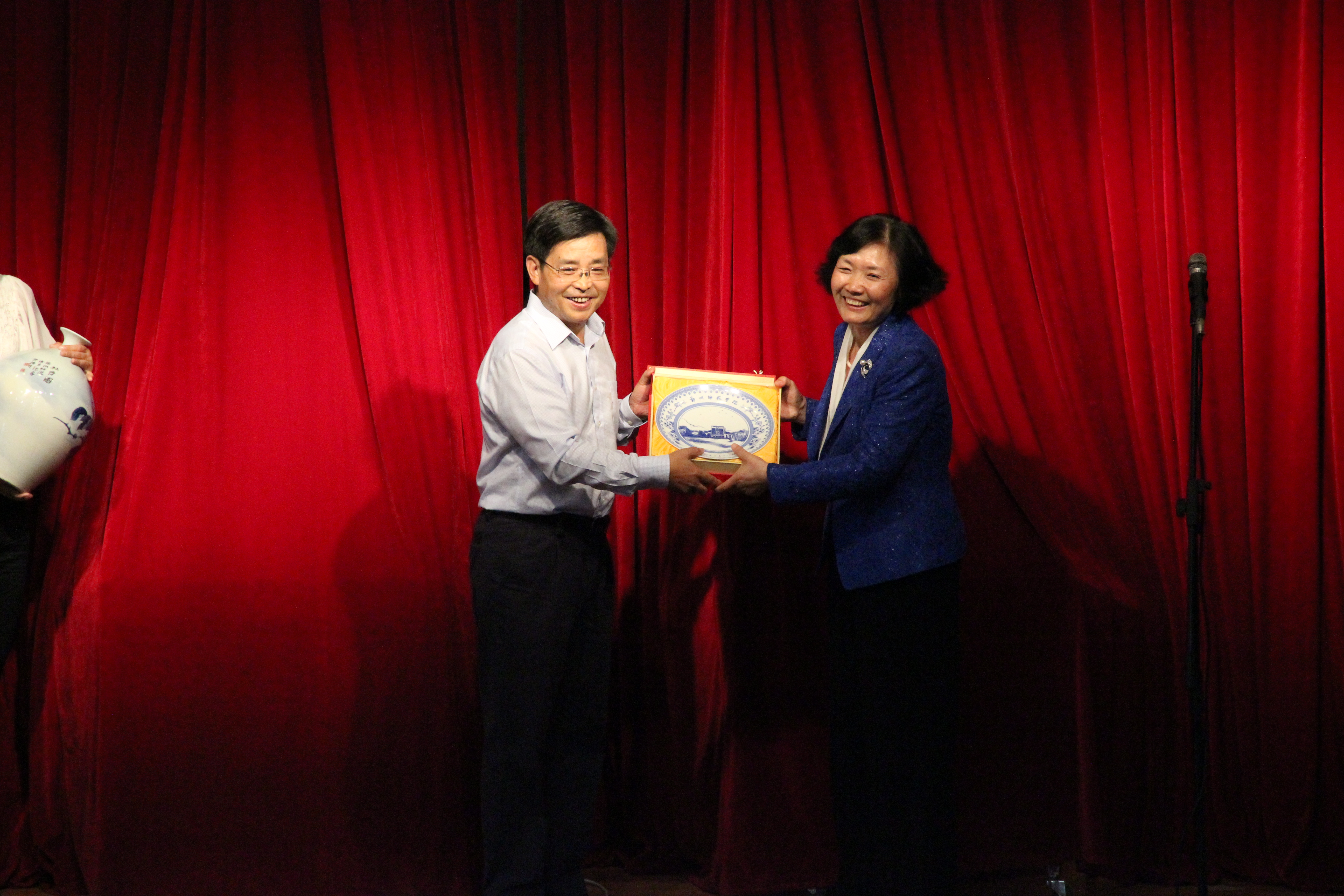 音乐会开始前,赵健校长和中医学院郑玉玲校长分别进行了热情洋溢的致辞并互赠纪念品,送上了深深的祝福,表达了浓厚的情谊。