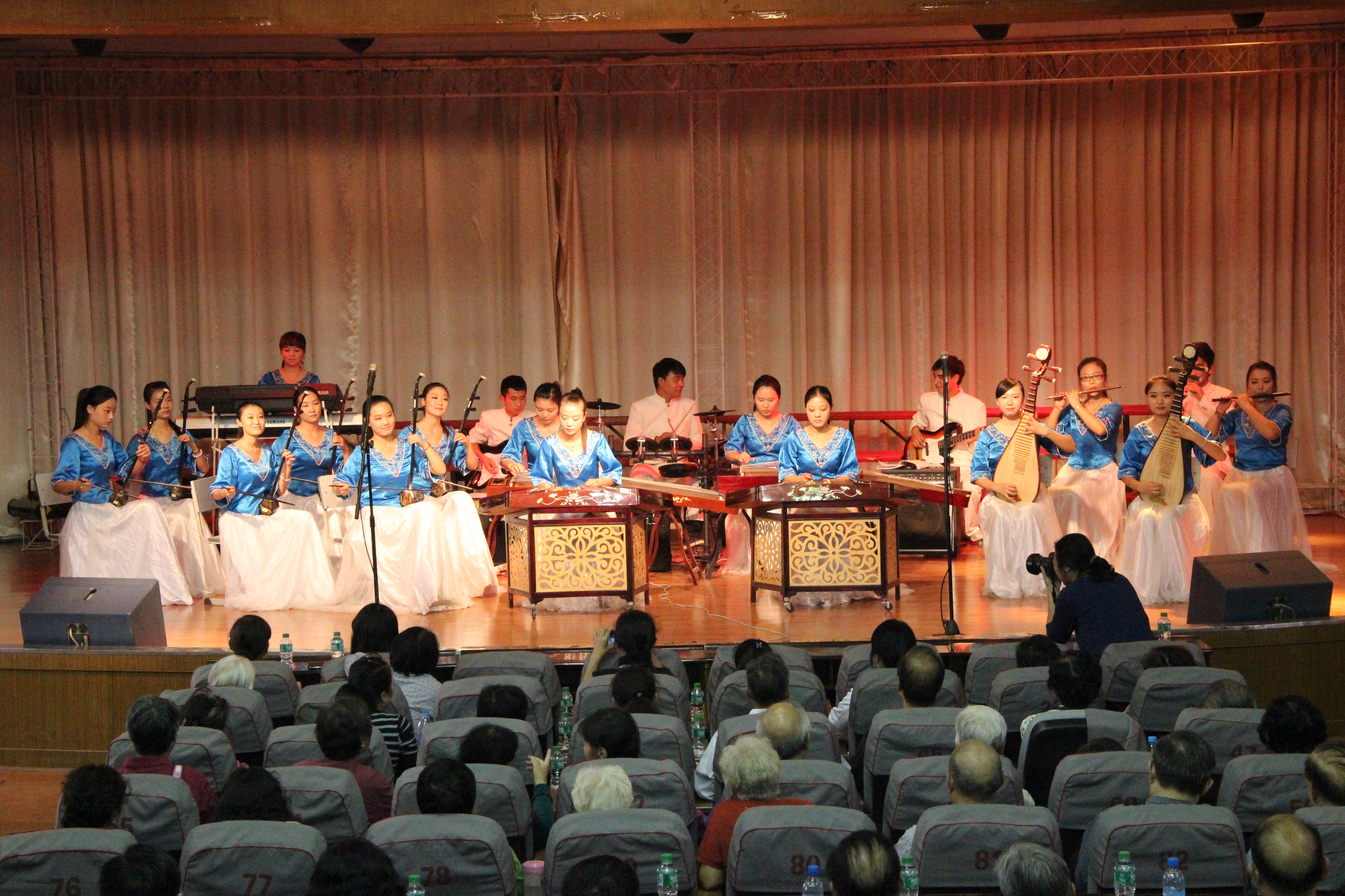 音乐会在音乐学院实验民族乐团的器乐合奏中拉开了帷幕,在全体师生的倾情演绎下,演出现场高潮迭起,掌声不断。