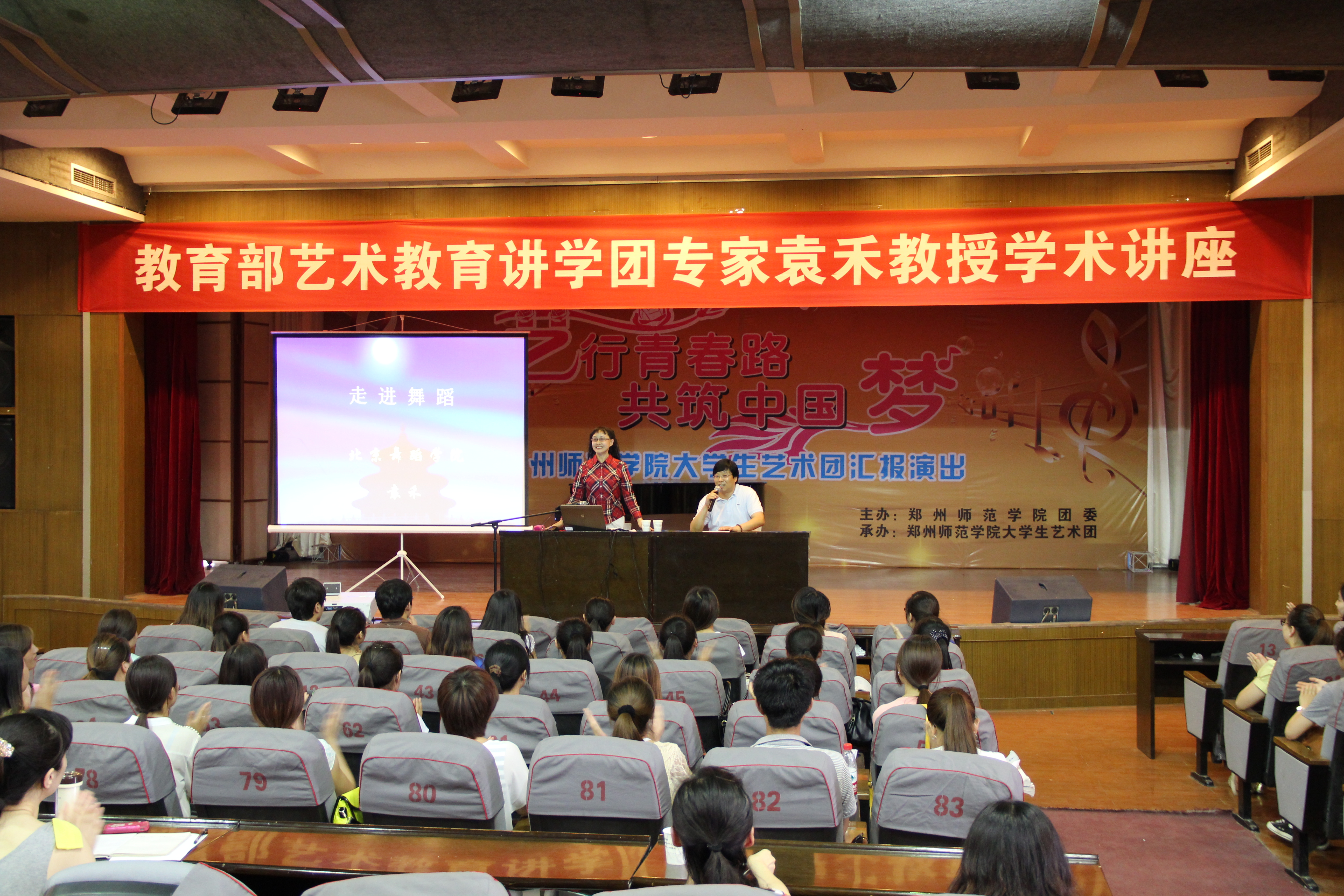 2013年6月5日下午,教育部“高雅艺术进校园活动”专家讲学团成员、北京舞蹈学院袁禾教授在音乐学院音乐厅作了题目为“走进舞蹈”的学术讲座,讲座由音乐学院负责人王国良教授主持,音乐学院三百余名师生聆听了此次讲座。