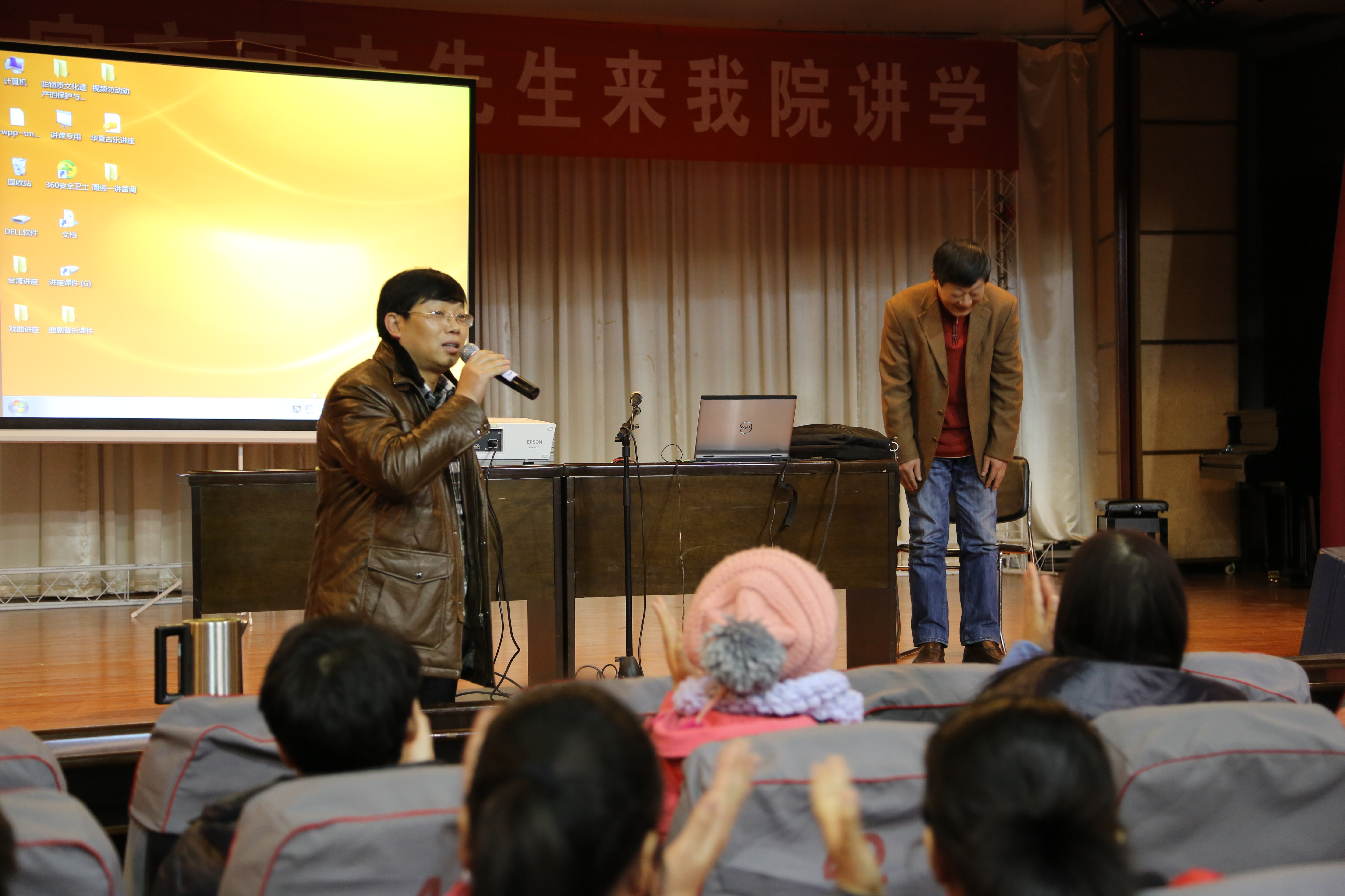 方老师的讲座条理清晰,资料丰富,图文并举,声情并茂,展示了中原音乐文化的丰富内涵,讲座结束后,方可杰老师还与师生们进行了面对面的交流,耐心、详细的解答大家提出的问题,赢得了全体师生的交口称赞。