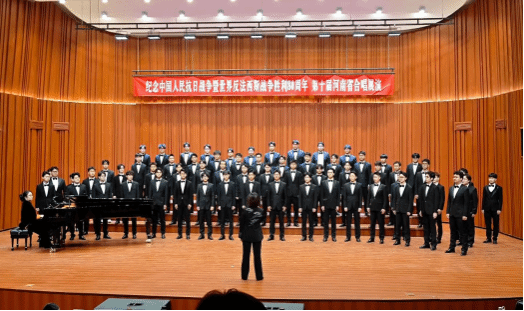在展演的舞台上,合唱团的成员们以饱满的精神状态和整齐的队列出现在观众面前。他们专注的神情和精准的音准,让整个表演充满了力量和美感。他们的表演主题鲜明,和声层次丰富,情感表达真挚,将对历史的铭记与对和平的赞颂完美地融入到歌声之中。他们的演出不仅赢得了评委的高度评价,也深深打动了现场的每一位观众,为他们赢得了热烈的掌声和认可。
