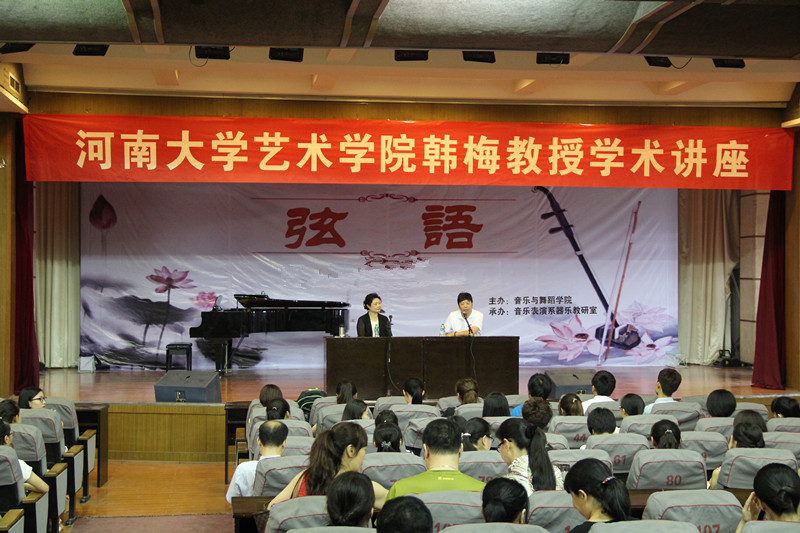 2014年6月10日下午14:00,音乐与舞蹈学院诚挚邀请河南大学艺术学院副院长韩梅教授在音乐厅举行学术交流讲座。此活动旨在进一步拓宽师生的专业视野、在师生间形成浓厚的学术交流氛围。音乐学院院领导、各部门负责人、全体教师与13级全体音乐学本科专业学生共同认真听取了讲座,讲座由音乐学院负责人王国良教授主持。