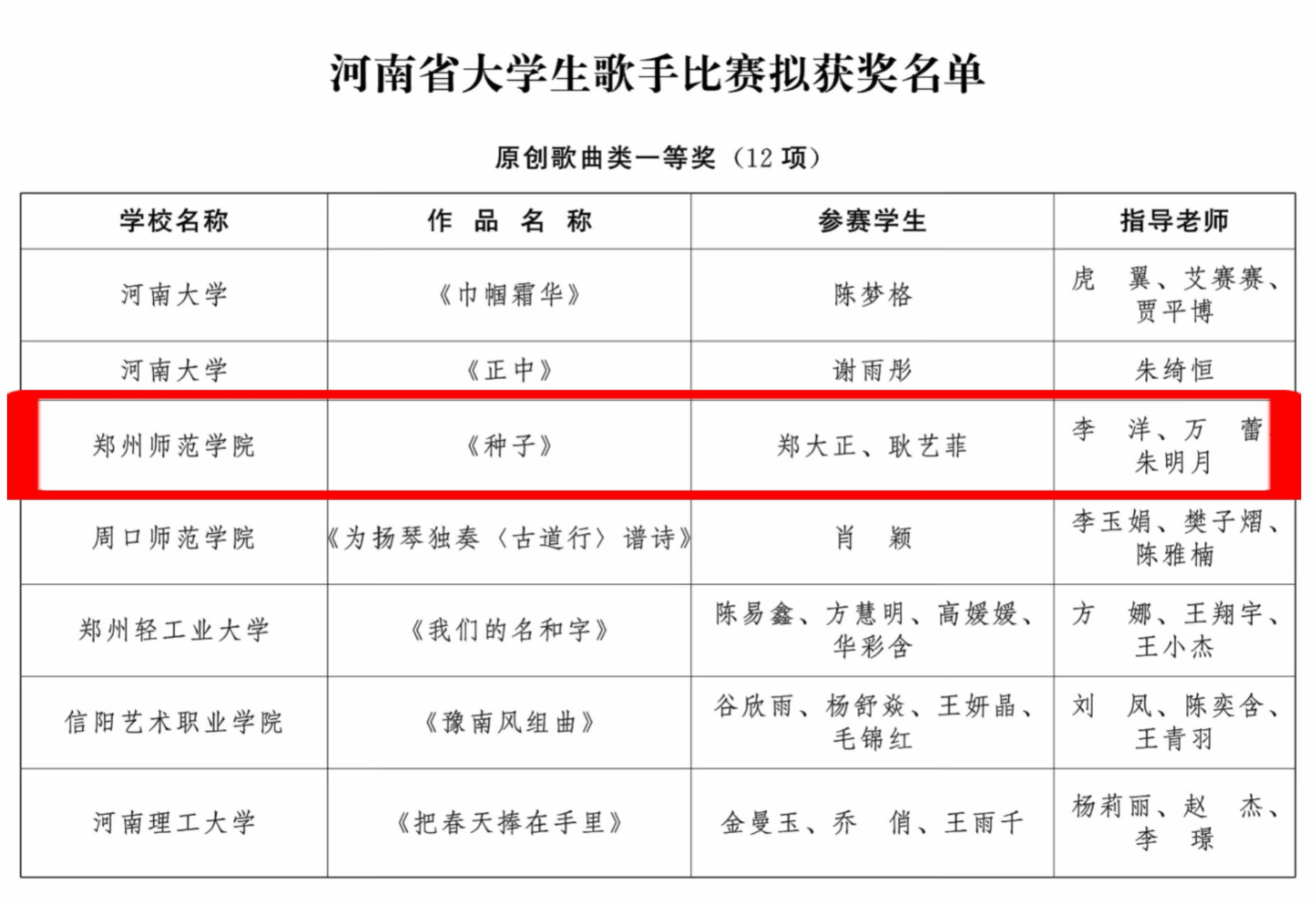 原创歌曲类:一等奖《种子》《少年当远游》;三等奖《致青春,起航》