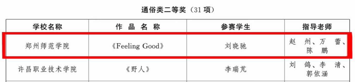 近日,中共河南省委宣传部、河南省教育厅、共青团河南省委、河南省文化和旅游厅、省科学技术厅、省体育局、省学生联合会联合下发《关于发布河南省第二十届大学生科技文化艺术节获奖作品(个人)和优秀组织单位名单的通知》(豫青联字〔202521号)。本届大学生科技文化艺术节启动至今,校团委与学院持续高位推进、周密部署,广泛动员师生踊跃参与。学院领导、各系负责人及专业教师深度投入,多次针对作品打磨、创意优化开展精准指导,以专业助力呈现,全力让每一份作品都绽放最佳风采。我院取得显著成绩,喜获奖项18项,其中一等奖9项,二等奖5项,三等奖4项。