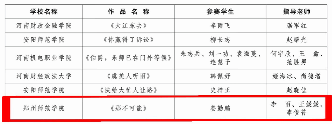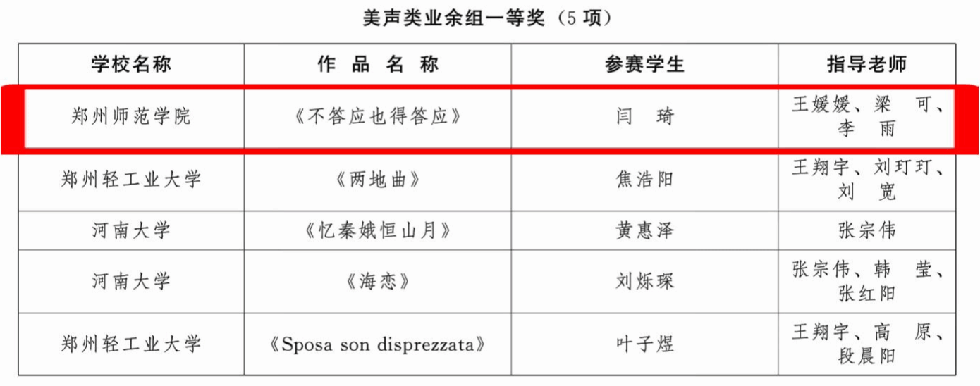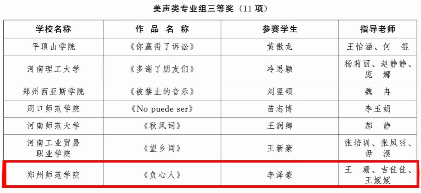 美声类(专业组):一等奖《那不可能》;三等奖《负心人》