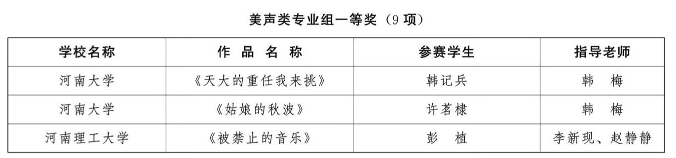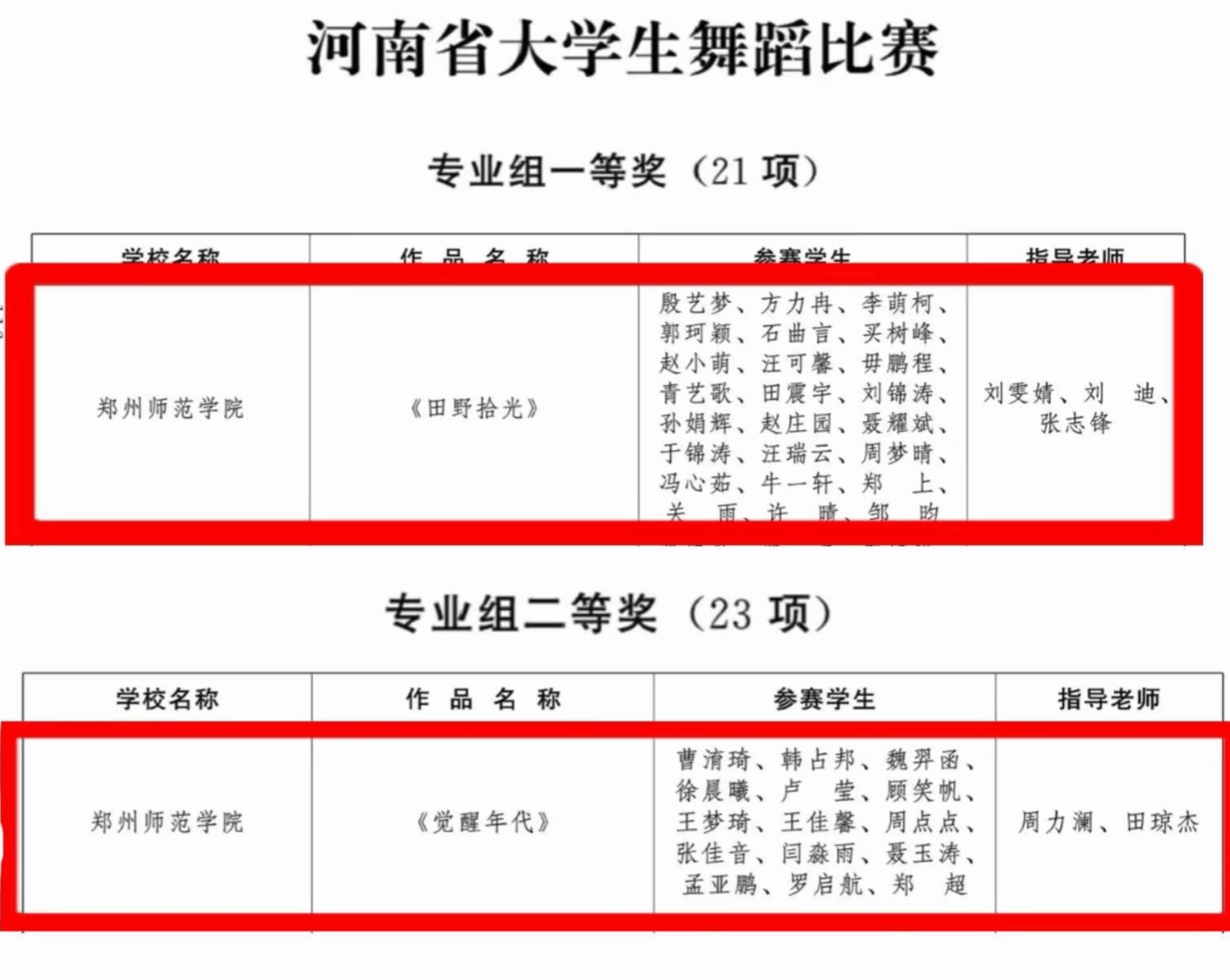舞蹈(专业组):一等奖《田野拾光》;二等奖:《觉醒年代》